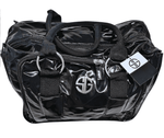 This Studio Gear Cosmetics Black Patent Tote is a really fun bag for an overnight or a weekend away. Roomy with a long zipper, and an extra 3-sided zipper front pocket. Measures 9" tall x 8" x 11" wide
